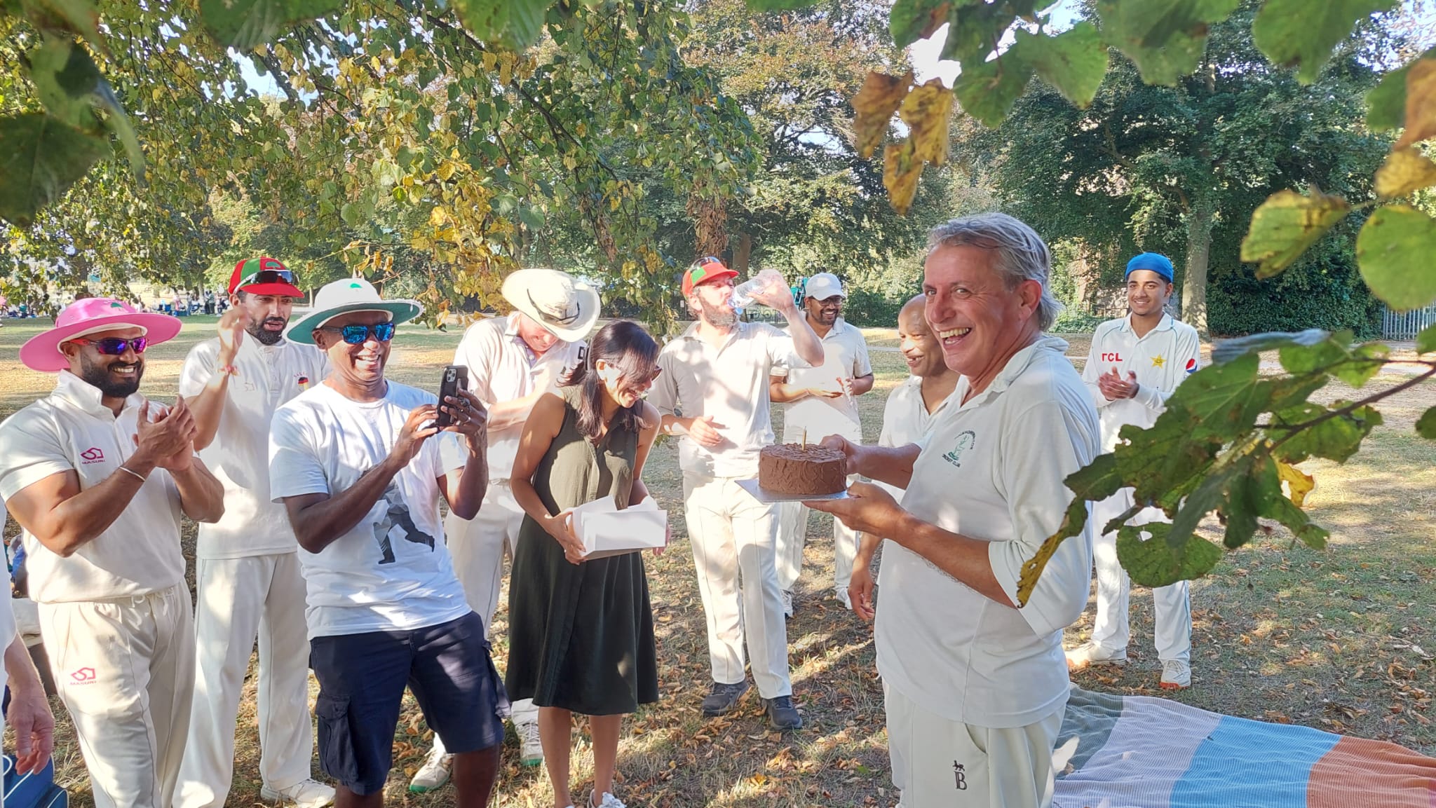 Dillan had oppo-skipper Rory clean bowled (What was Rory doing? He wasn’t so much playing down the wrong line as in the wrong county). Deeps, Raj, Sai & I all got a scalp. I can’t remember whose wicket I took and therefore will never need to mention it again*****. The pick of the rotating bowlers though was Irwin. Copping a bit of stick from his young relatives he let his game do the talking, taking two wickets with his two overs and being too polite to even shush them.